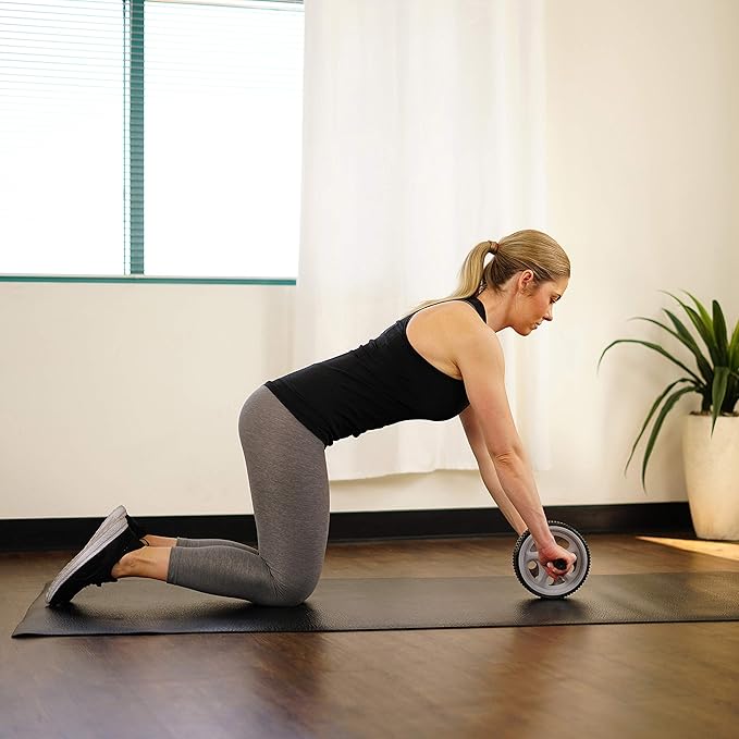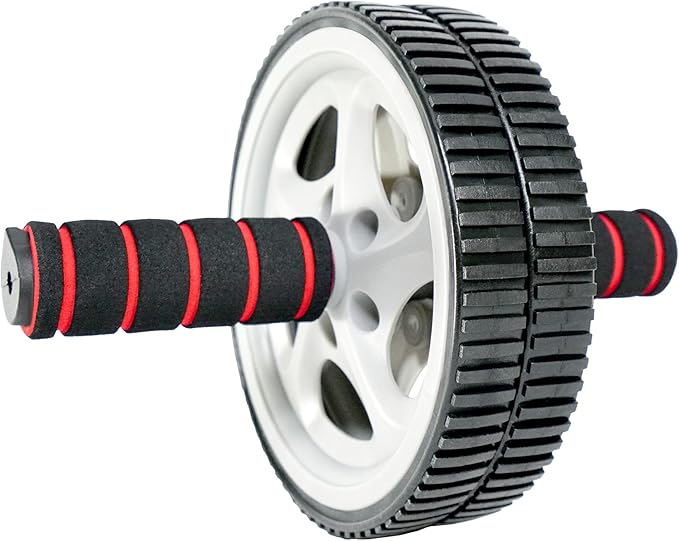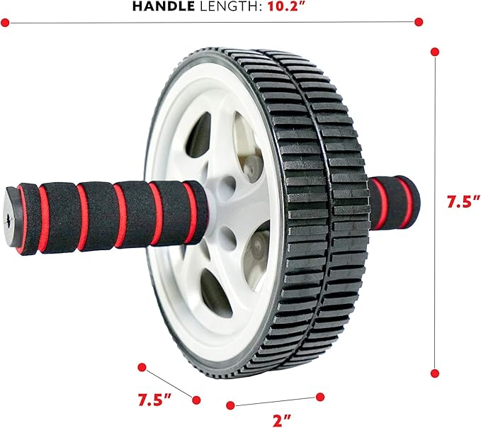 - DOUBLE-WHEEL DESIGN: Wide shaped wheel ensures stability and bears the weight of your entire body. The wheel’s textured surface promotes stability and control. Handles prevent slipping and while reducing hand fatigue.