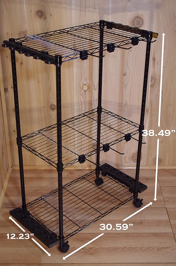 Old Cedar Outfitters Rolling Rod Cart and Tackle Trolley Holds 12 Rod and Reel Combo for Garage and Home Storage