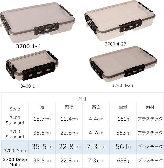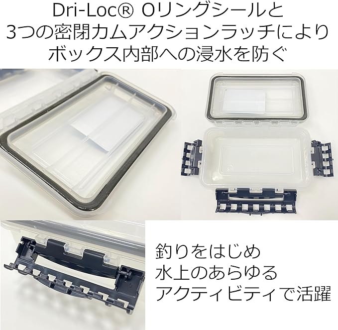 - Transparent for quick and easy identification of contents.Sport type: Fishing.Dri-Loc O-ring seal.Three tight sealing cam action latches.1-4 adjustable compartments.Great for large items