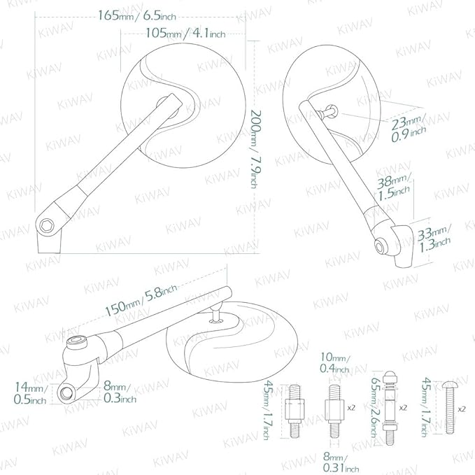 - Included Components : A pair of mirrors, 2 x 8mm to 10mm standard thread adapters, 1 x 8mm to 10mm reverse thread adapter, and 4 x 5/16'' thread adapters A pair of mirrors, 2 x 8mm to 10mm standard thread adapters, 1 x 8mm to 10mm reverse thread adapter, and 4 x 5/16'' thread adapters