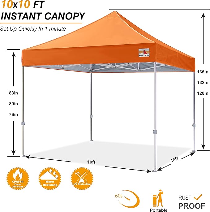 ABCCANOPY Commercial Pop Up Canopy Tent 10x10 Premium-Series, Orange