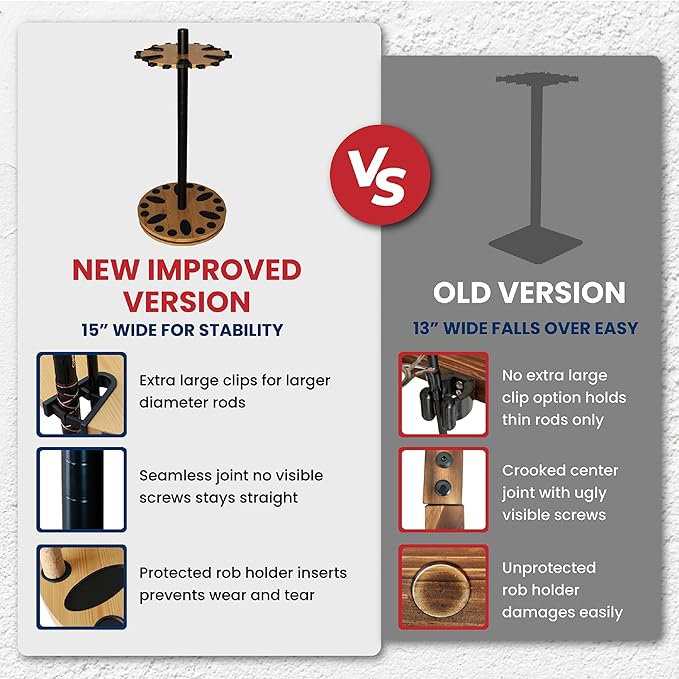 - Rotating round fishing rod rack with 6 dual rod clips stores and displays up to 24 rods (rods not included)