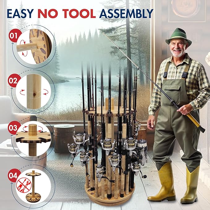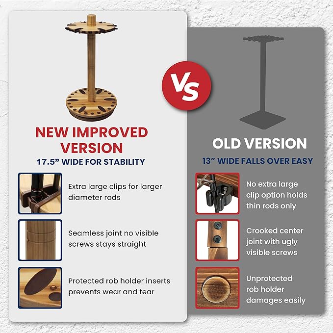 - Durable Construction: This fishing rod holder's solid wood center post is meticulously made, making it extra sturdy and reliable; providing long-term storage for your fishing gear - such as fishing poles, fishing rods, accessories, and tackle boxes.