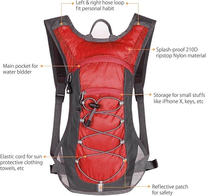 - LIGHTWEIGHT & SPLASH RESISTANCE & DURABLE: Upgraded lightweight and Splash Resistance nylon with 2 Liter balder (in total 1.1 lb) to reduce your load and protect your belongs stay dry in light rain, and its double built-in waist straps improve its wear and tear resistance to ensure the pack’s life last longer.