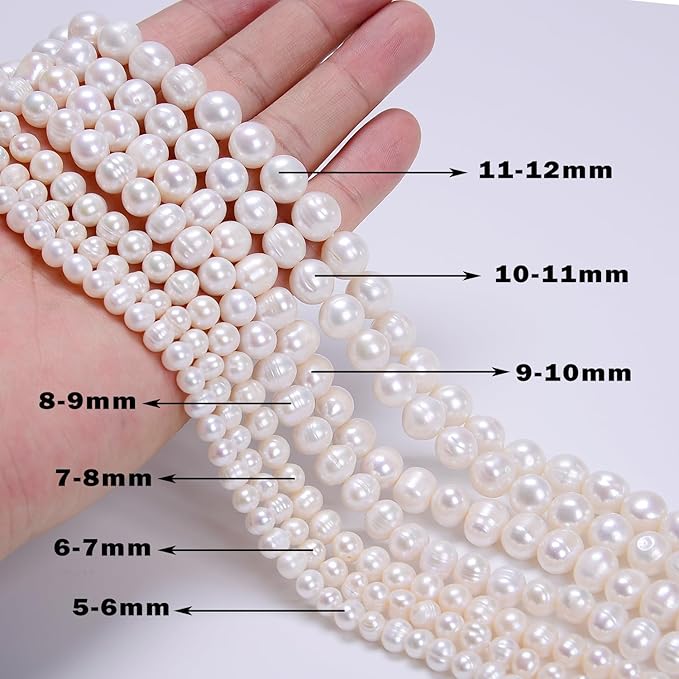 AD Beads Natural Freshwater White Pearl Round Beads 15" 4mm 6mm 8mm 9mm 10mm 11mm 12mm (11-12mm)