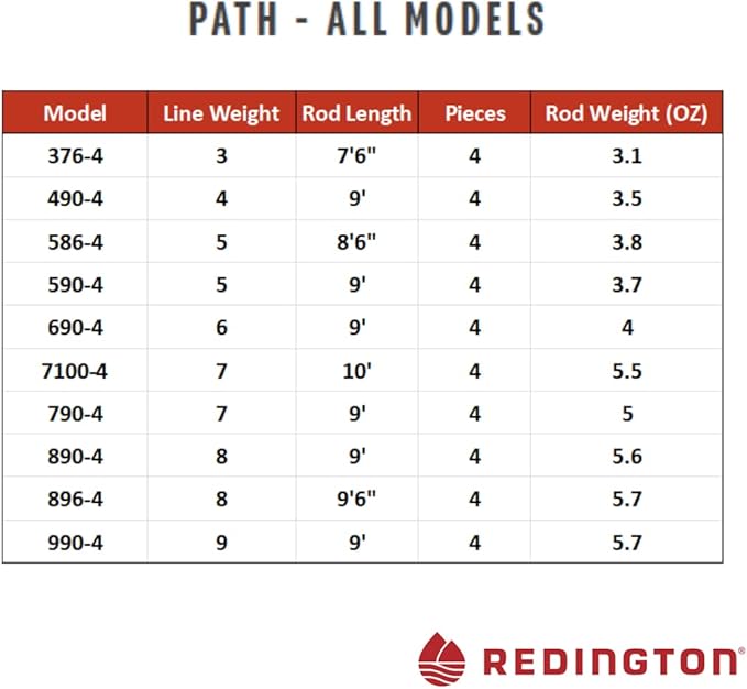 Redington Path Fly Fishing Rod with Tube, 4 Pieces, Medium Fast Action Freshwater Fly Rod, Case Included
