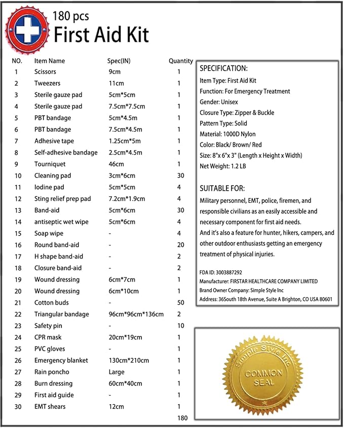 - ★INCLUDED: 180 piece essential medical supplies for backcountry expeditions. Be Desmond Thomas Doss saving your family and friends in an emergency.