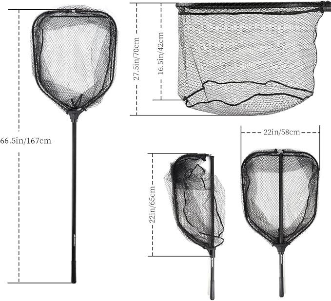 - ADVANTAGES: The foldable fishing landing net is coated fine tangle-free Nylon mesh net: soft, compact, strong and durable. The fish net is non-absorbent, there is no worry that it will become very heavy with water. Safe fishing Catching & Releasing, special coated design can also effectively prevent the fish hook from stuck
