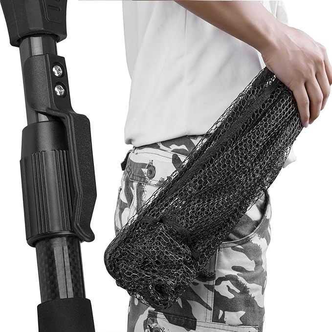 - 🎣 Premium Material: High-density carbon fiber mixed with fiberglass pole, durable nylon and strong hexagonal structure mesh, skid-resistant EVA handhold makes the fishing net solid and durable.