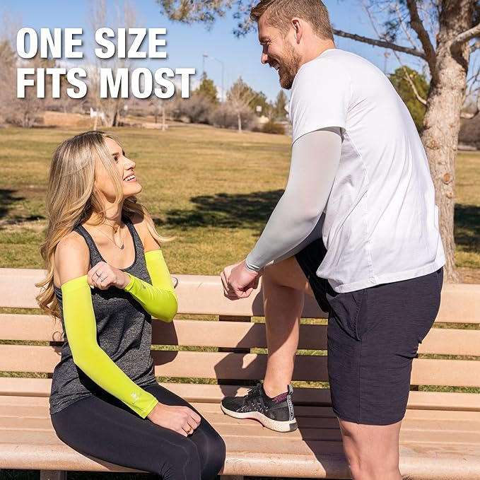 - Superior UPF 50+ premium arm sleeves – our innovative UV sleeves for men and women block over 98% of the sun’s harmful UVA and UVB rays, offering full UPF 50+ coverage. These sun sleeves for men and women are ideal for shielding yourself from the sun on hot days – whether you’re playing golf, basketball, baseball, volleyball, running, or cycling.