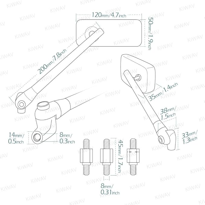 - Included Components : A pair of Mirrors, 2 x 8MM to 8MM standard thread adapters, 1 x 8MM to 8MM reverse thread adapter