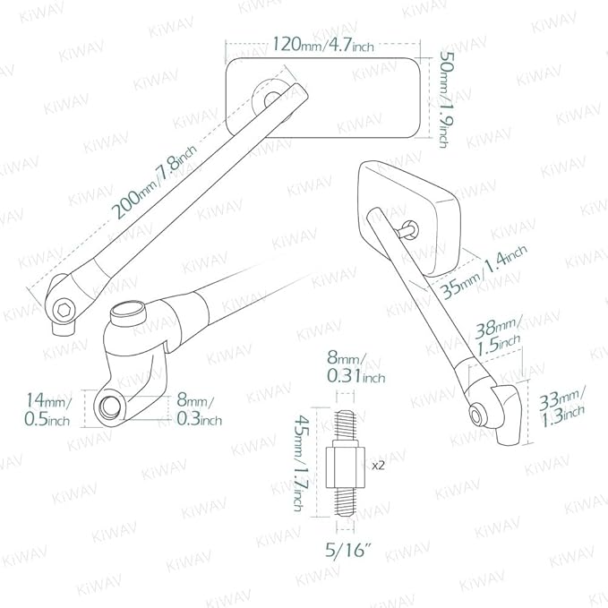 KiWAV Motorcycle Mirrors Rear View Side Rectangular ClassicPlus Chrome Convex Aspherical Anti-Glare Blue Tinted Glass Longer Stem Compatible for Custom Harley Street 500 750 Pack of Pair