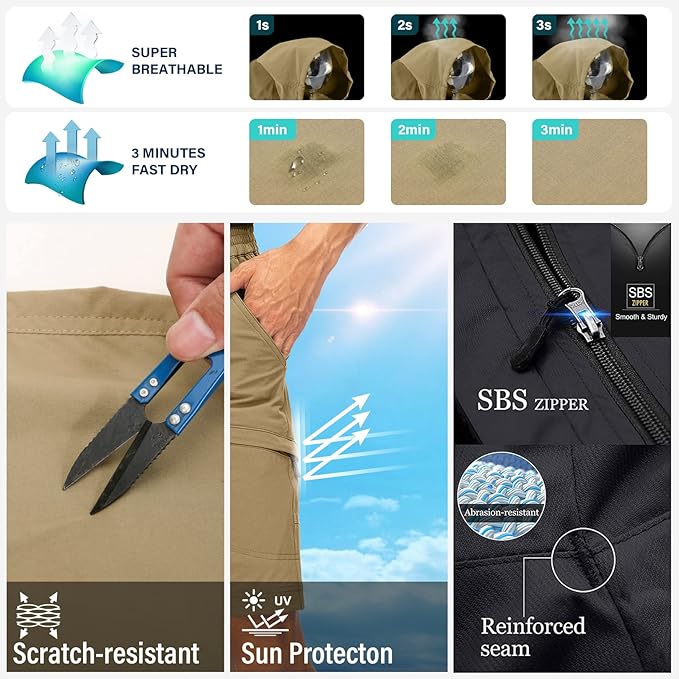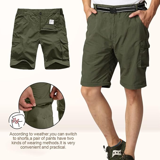 - Convertible Pants Men: Zip off hiking pants for men make for an easy change from pants to shorts, suitable in the hot and cool seasons of spring summer and autumn. 2-in-1 mens hiking pants convertible quick dry pants can reduce your travel weight.