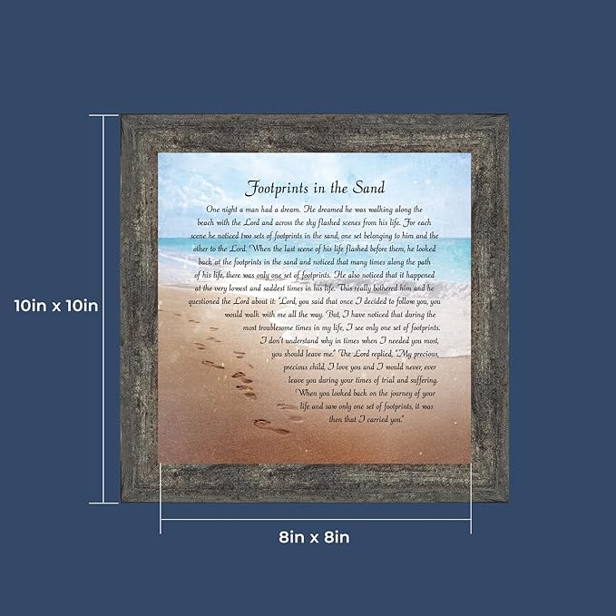 - FOOTPRINTS IN THE SAND WALL ART will provide encouragement and comfort through difficult times. This is a heartwarming gift for those who have lost a loved one, sympathy, condolence, or memorial gift. The frame will fit well as Christian wall decor for bedroom or wall decorations for living room.