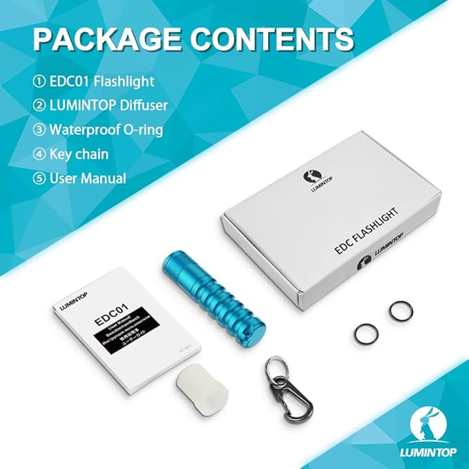 - WHAT YOU GET: Lumintop EDC01 keychain Flashlight, 2*Spare O-Rings, Diffuser, Keychain.