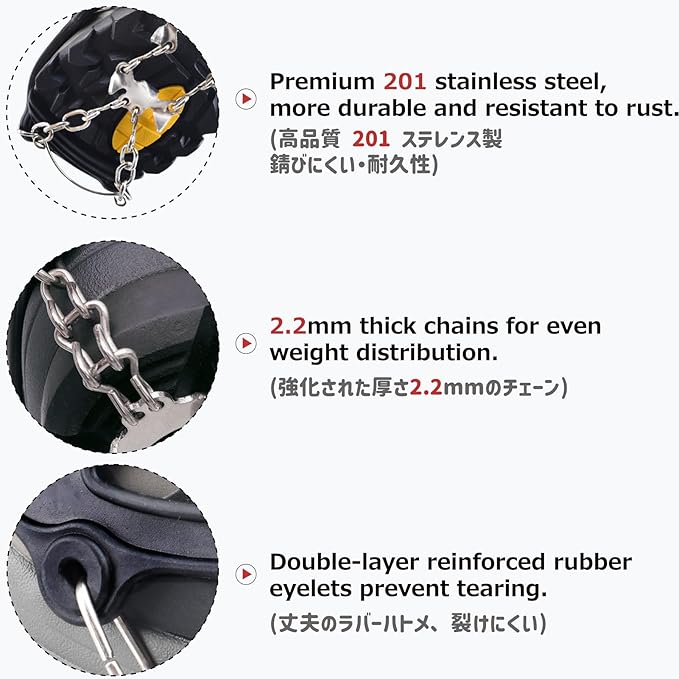 - Safer: The chain links of these crampon cleats are made with reinforced, thickened 2.2mm stainless steel chains. These ice cleats provide you with more confidence when walking on snow and ice. Great gift for occasions such as birthdays, Christmas, Thanksgiving, Mother's Day, Father's Day, and more