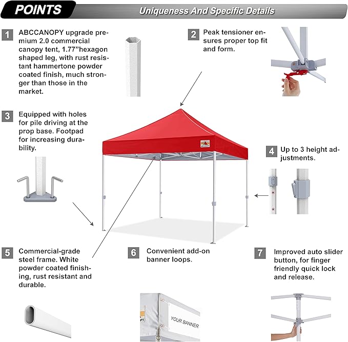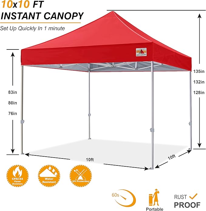 ABCCANOPY Commercial Pop Up Canopy Tent 10x10 Premium-Series, Red