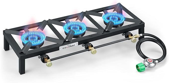 Propane Triple Burner Angle Iron Camp Stove with CSA Listed Regulator and 4ft Hose (SA3200)