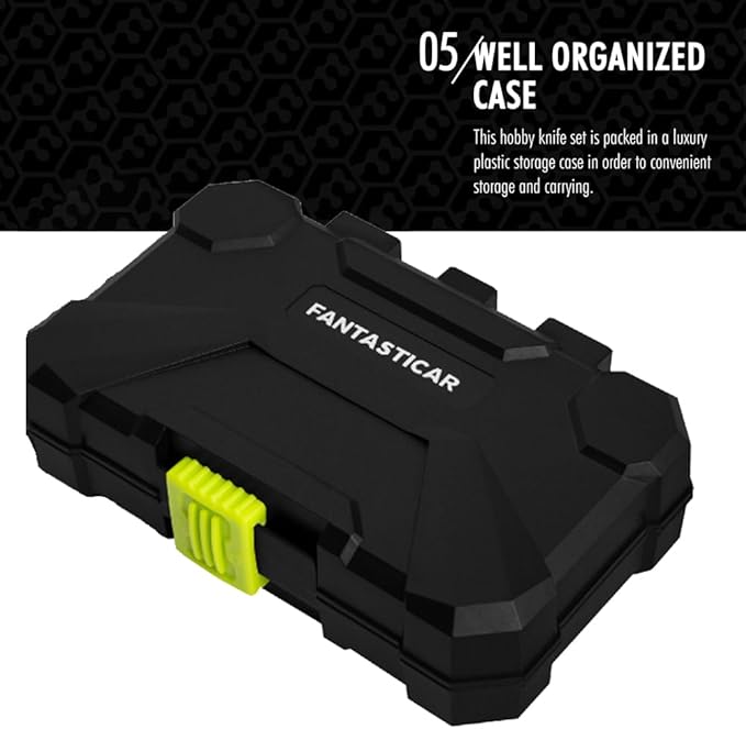 - [ Well Organized Case ] This hobby knife set includes stencil, fine point, scoring, chiseling blades, packed in a compact designed plastic storage case for convenient storage and carrying, keeping them well sorted in one place. All blades won't fall down or get messy when you open the case!