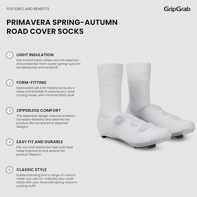 - πππ¦π¬ πππ§ ππ‘π ππ¨π₯ππππ β Pre-cut and reinforced heel and cleat holes improve the fit and extend the product lifespan of the Primavera GripGrab Cover Socks; Wear them as an additional layer in winter