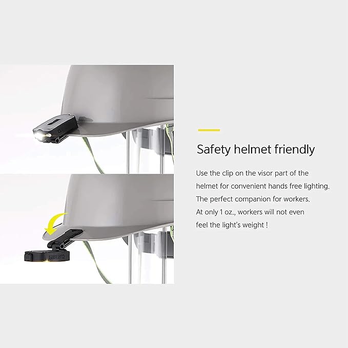 - HANDS-FREE CLIP-ON & CARABINER: Easily clip the light onto caps, helmets, or flat surfaces, or hang it with the included carabiner for total hands-free convenience—perfect for work or outdoor activities.