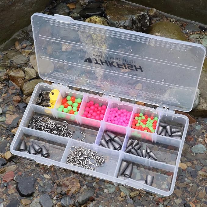- WONDERFUL FISHING TACKLE KIT: The fishing tackle kit contains a variety of fishing accessories, such as fishing weights, fishing beads, fishing swivels ,fishing hooks, etc., which can satisfy your various choices when setting up a Carolina-rig or Texas Rig. It's Very convenient and save you a lot of time searching for accessories.Please refer to the picture and product description for the specific package content.