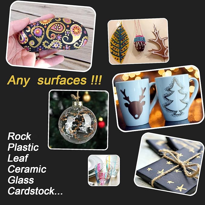 - Widely Usage - Dyvicl metallic marker pens for arts and crafts. Works on most surfaces, such as paper, cardstock, rock, plastic, fabric, metal, wood, ceramic, glass, and more