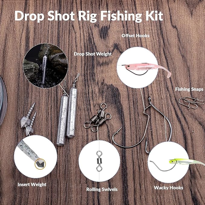 - SHARP WACKY & OFFSET HOOKS: Extremely sharp hooks and high strength. Curved shank and a wide-gap design, prefect for Drop Shot Rig . Swivel helps avoid line twist and super fast to put on just peg on your line no tying required. Drop shot fishing is excellent for pike and bass and crappie.