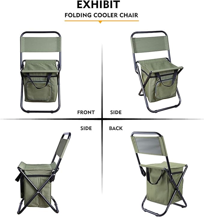 LEADALLWAY Fishing Chair with Cooler Bag Compact Fishing Stool Foldable Camping Chair