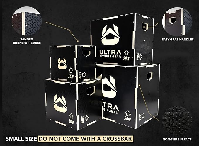 - Purpose built for Plyometric Exercise.The Ultra Fitness Gear Garage Wood Plyo Box features 3 different height options for training flexibility: can be used at 20, 24, and 30 inch heights. Develop strength through your jump training, dips, step-ups, and box push-ups