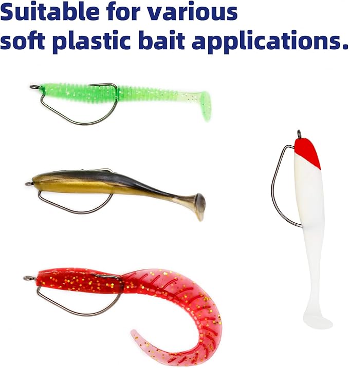- Wide Application --- This EWG offset worm hook is suitable for worms of different sizes. It is fit for various soft plastic bait applications, such as Carolina rig, Texas rig, Senkos and Craws beaver baits. The fish hooks also can be used for both freshwater and saltwater fishing