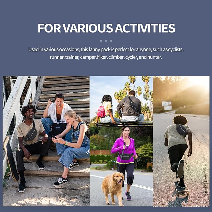 - Use For: This fanny pack is perfect for festivals, travel, concerts, events, shopping, running, hiking, camping, fishing, gym, bike ride, workout, great gifts for those you love.