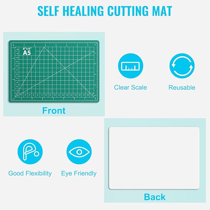 - [Self Healing Cutting Mat]---The A5 Mat have 5-layer design for maximum durability, show inch, angled guides.