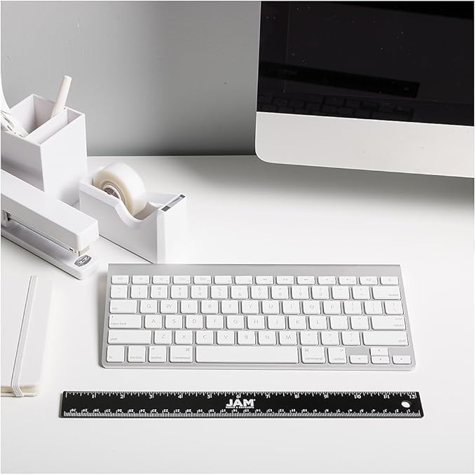 JAM PAPER Strong Aluminum Ruler - 12 Inch - Metal Ruler with Non-Skid Cork Backing - Black Metallic - Sold Individually