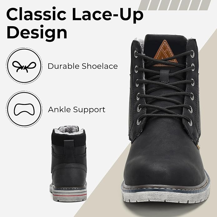 - Waterproof & All-Weather Protection: Built with water-resistant faux leather and sealed seams, these waterproof winter boots for men keep your feet dry through snow, rain, and slush. Perfect for cold weather hiking, snow shoveling, or everyday wear, combining durability, warmth, and modern outdoor style for all-weather protection