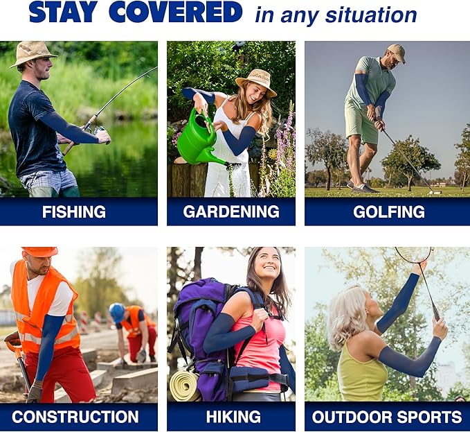 - SKIN TEMPERATURE DOWN 2 DEGREES CELSIUS : In summer, definitely feel cool when these sun sleeves on, but in winter, it can make your arm warmer too , yes , it is so amazing.99.8% UV Protection, got no sunburn or bug bites. Not easy to cause bacteria, fast sweat kick-away and fast dry, make your skin fresh all day
