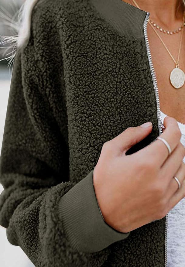 - DESIGN: The fuzzy fall jacket features soft and warm fleece, long sleeves, zipper closure, ribbed hem cuffs, lightweight lining and two pockets, casual relaxed loose fit, is a stylish and classic bomber jacket.