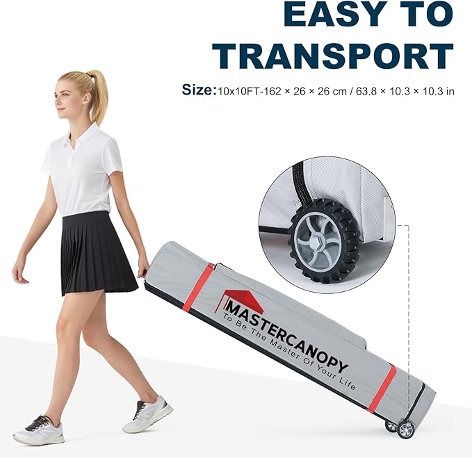 - ✅Large Space: 10 x 10 Pop Up Canopy with straight legs provides a true 100 square feet shade. Big enough for about 6-10 people to sit under it. Center height is 132 inch. Suitable for market stalls, parties, picnics or any outdoor events. MASTERCANOPY commercial canopy tent is suitable for both sunny and rainy days.