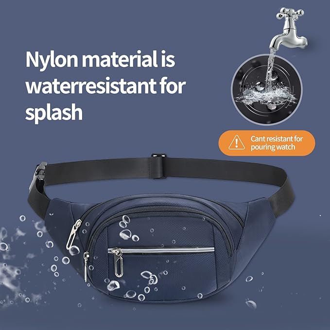 - ITEM SIZE: 13.38” L x 1.96” W x 5.51” H. Adjustable waist strap (fits up to 47.5”) with quick release buckle.making the fanny pack ideal for men, women and teenagers.