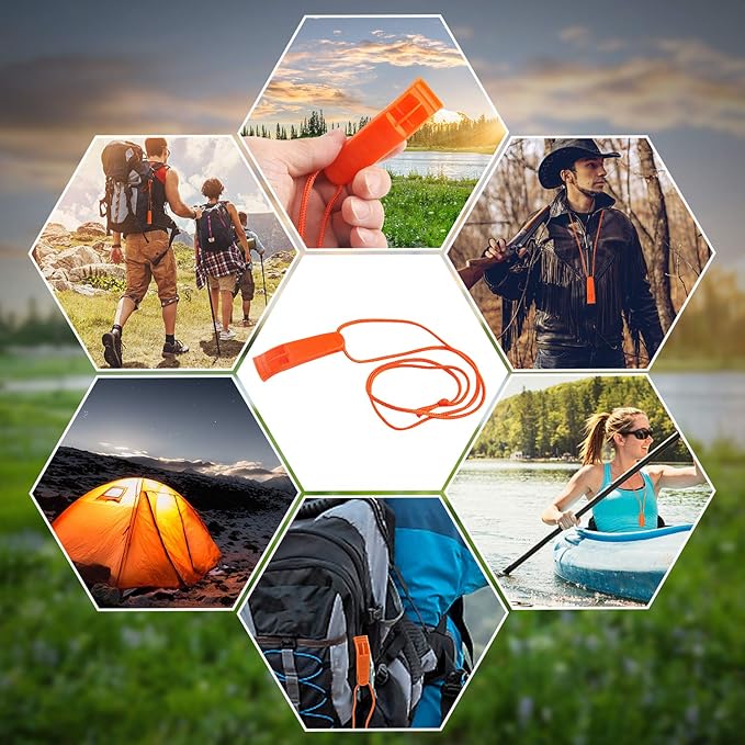 - Conspicuous Colors: These whistles are designed to be visibly orange, very bright, which can attract others' attention outside, help you to be found easily .