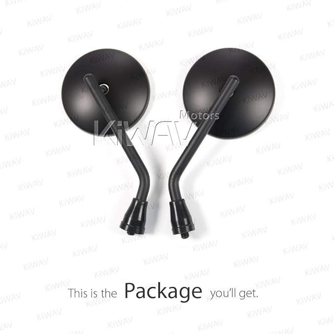 KiWAV Motorcycle 4 Inches Round Mirrors Rear View Side Old School Black Eclipse Short Stem Convex 10mm M10 1.25 Pitch Standard Threads Compatible for Most Metric Bikes Pack of a Pair