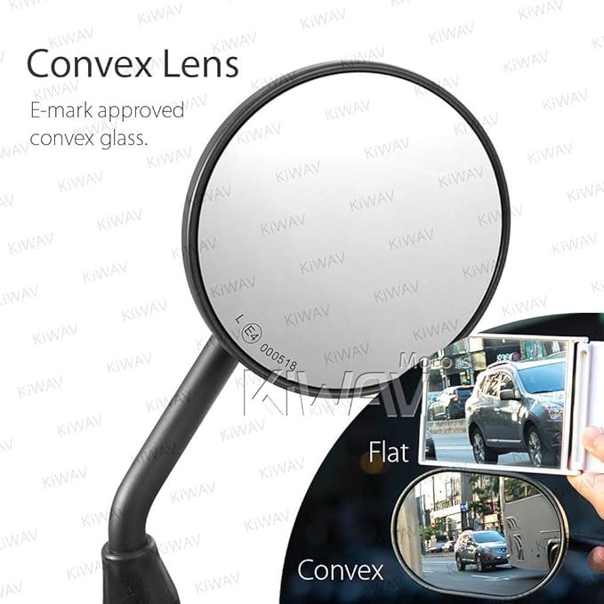 - Convex lens (1250R) without image distortion for better vision and safer ride.