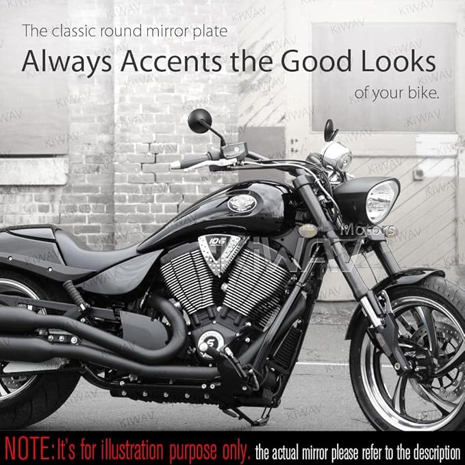 - The classic round mirror plate always accents the good looks of your bike. Short stem for a sleek and clean style. Great option for custom motorcycle projects.