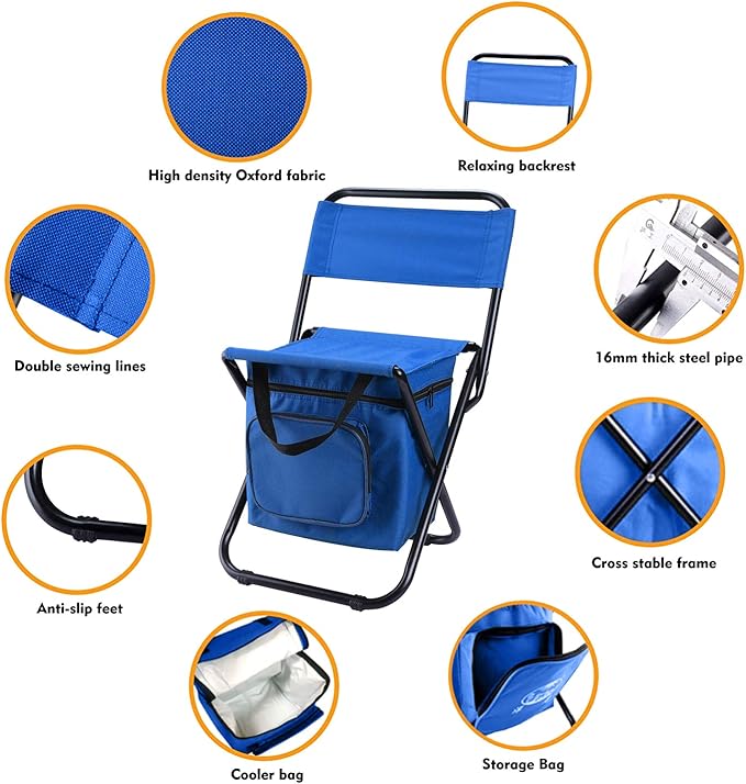 LEADALLWAY Fishing Chair with Cooler Bag Compact Fishing Stool Foldable Camping Chair