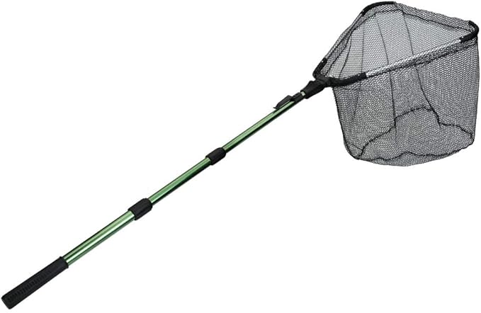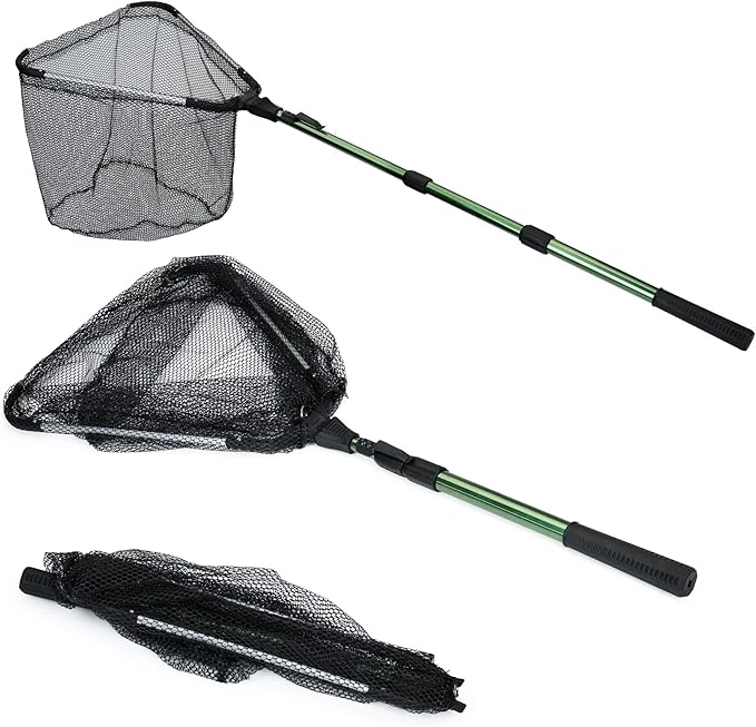 - Fishing net with handle is foldable and retractable, easy fit into a storage or rod locker.