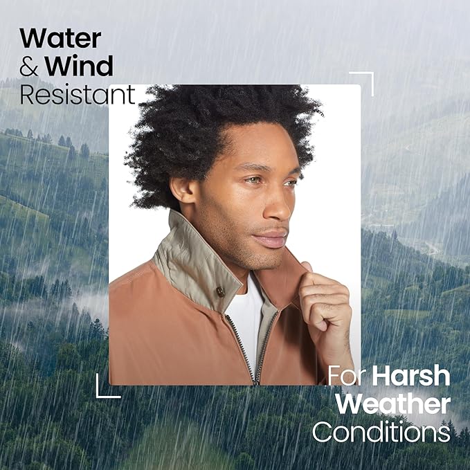 - Superior Fabric: Made with a sanded microfiber shell, this men's golf jacket combines a lightweight feel with water and wind resistance, ensuring comfort in various weather conditions.