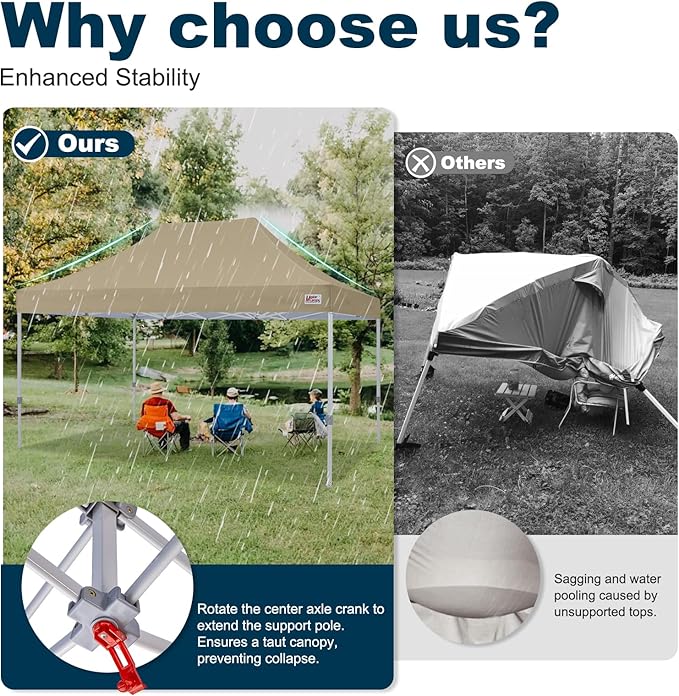 - ✅Strong and Sturdy Frame: 10 x 15ft. Full Truss Structure of powder-coated 1mm thick square shaped legs and super strong cross truss is very sturdy, which can withstand 50 km/h wind the sandbags, ropes. Good looking and rust-resistant.