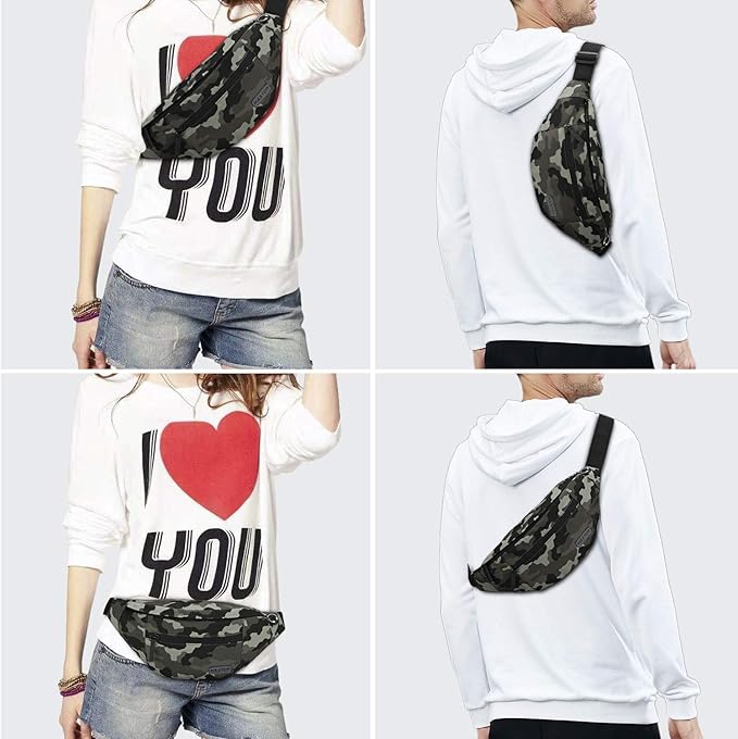 - Changeable Style Fanny Pack,Many Ways to Wear — Since the comfortable long strap is widely adjustable for most waist size(20” - 50”).There are many ways to wear this fanny pack - You can wear it in front of your waist, back on your hip, slant across your chest or over You shoulder.Perfect for various occasions.