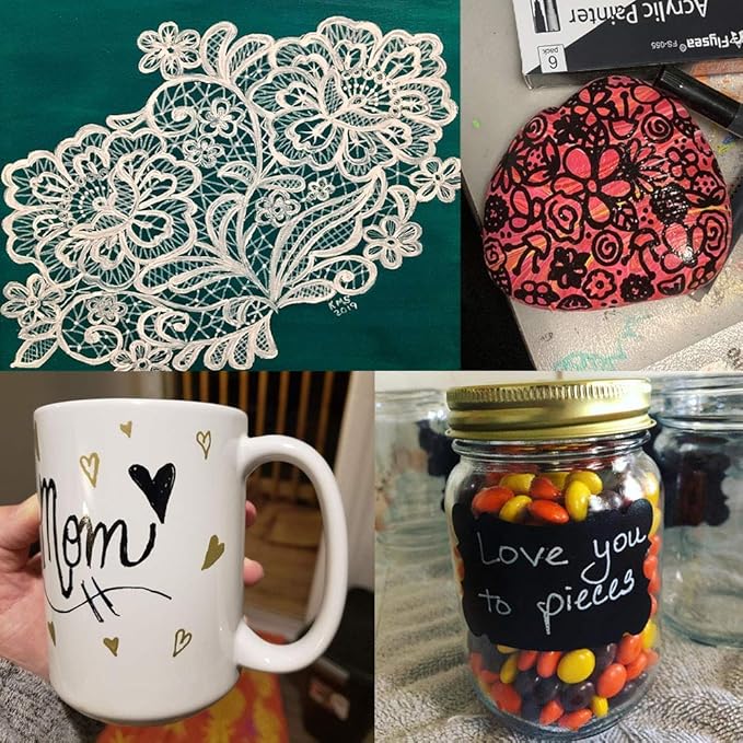 - 【Mark on dark and light color surfaces】Contrast color is very eye-catching, suitable for leave message and sign. Suitable for leave message and permanent sign. Paint markers for rocks painting, fabric, ceramic, glass, wood, plastic, leather, canvas, mugs, blackboard almost any solid surface.