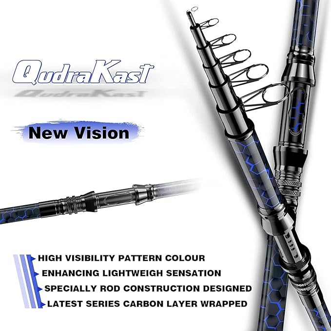 Fishing Rod and Reel Combos, Unique Design with X-Warping Painting, Carbon Fiber Telescopic Fishing Rod with Reel Combo Kit with Tackle Box, Best Gift for Fishing Beginner and Angler
